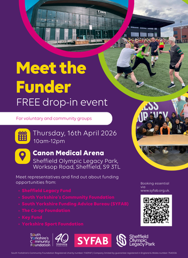 Sheffield Olympic Legacy Park is hosting the free drop-in event, in partnership with South Yorkshire’s Community Foundation (SYCF), at Canon Medical Arena on Thursday 16 April 2026.